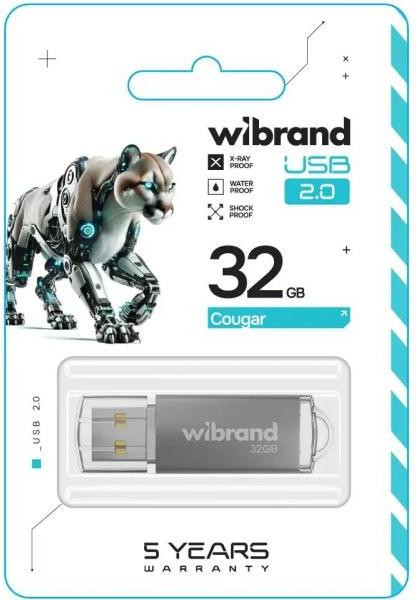 USB флеш Wibrand Cougar, 32GB, USB 2.0, Silver (WI2.0/CU32P1S)