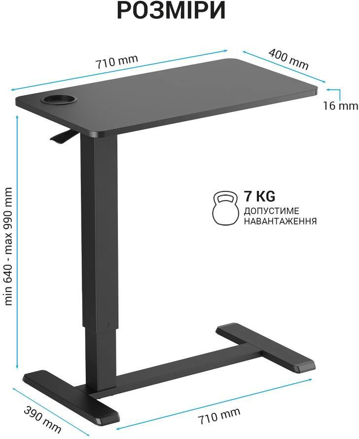 Мобільна робоча станція. Компактний стіл, який оснащується регулюванням висоти, що дає змогу налашто