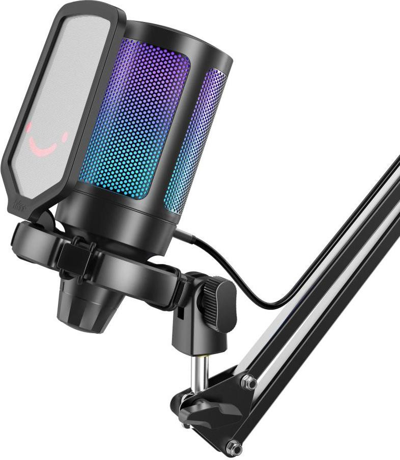 Мікрофон із вбудованим павуком, Поп-фільтр, Кабель Type-C — USB, Стійка пантограф, Посібник користув