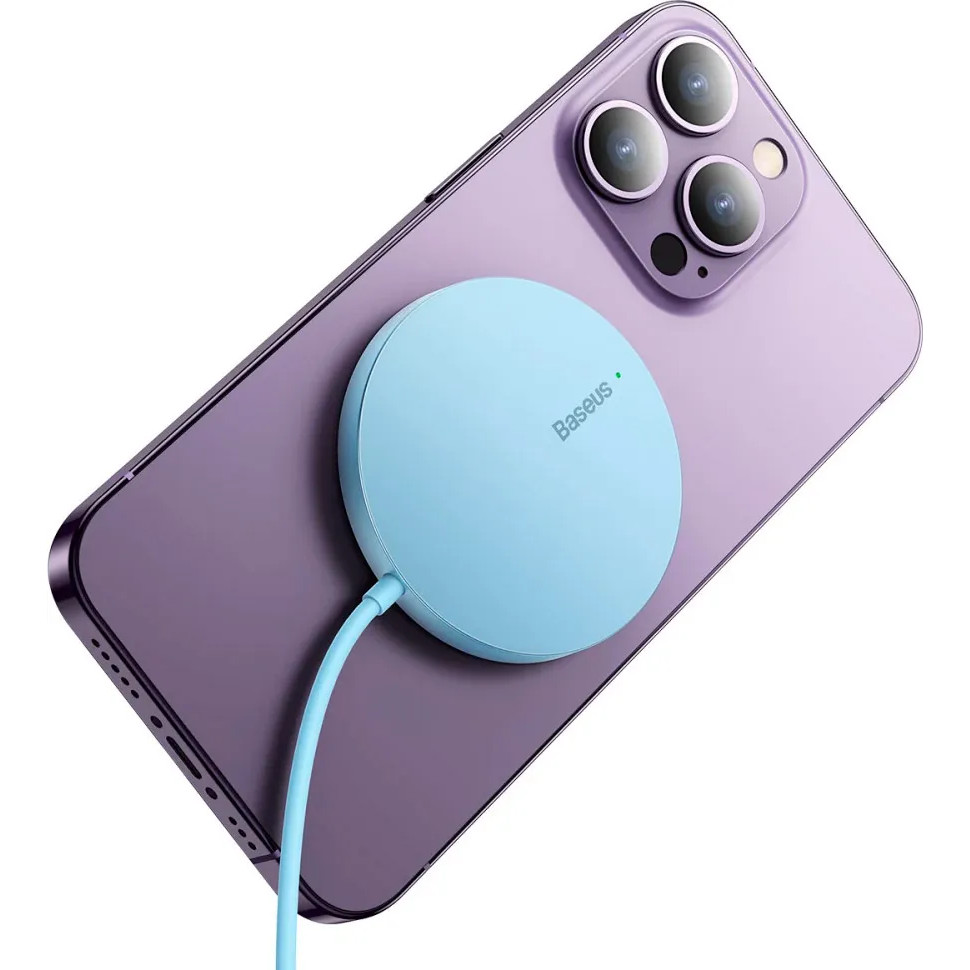 Бездротовий зарядний пристрій Baseus Simple Mini3 Magnetic Wireless Charger, 15W, Blue (CCJJ040303)