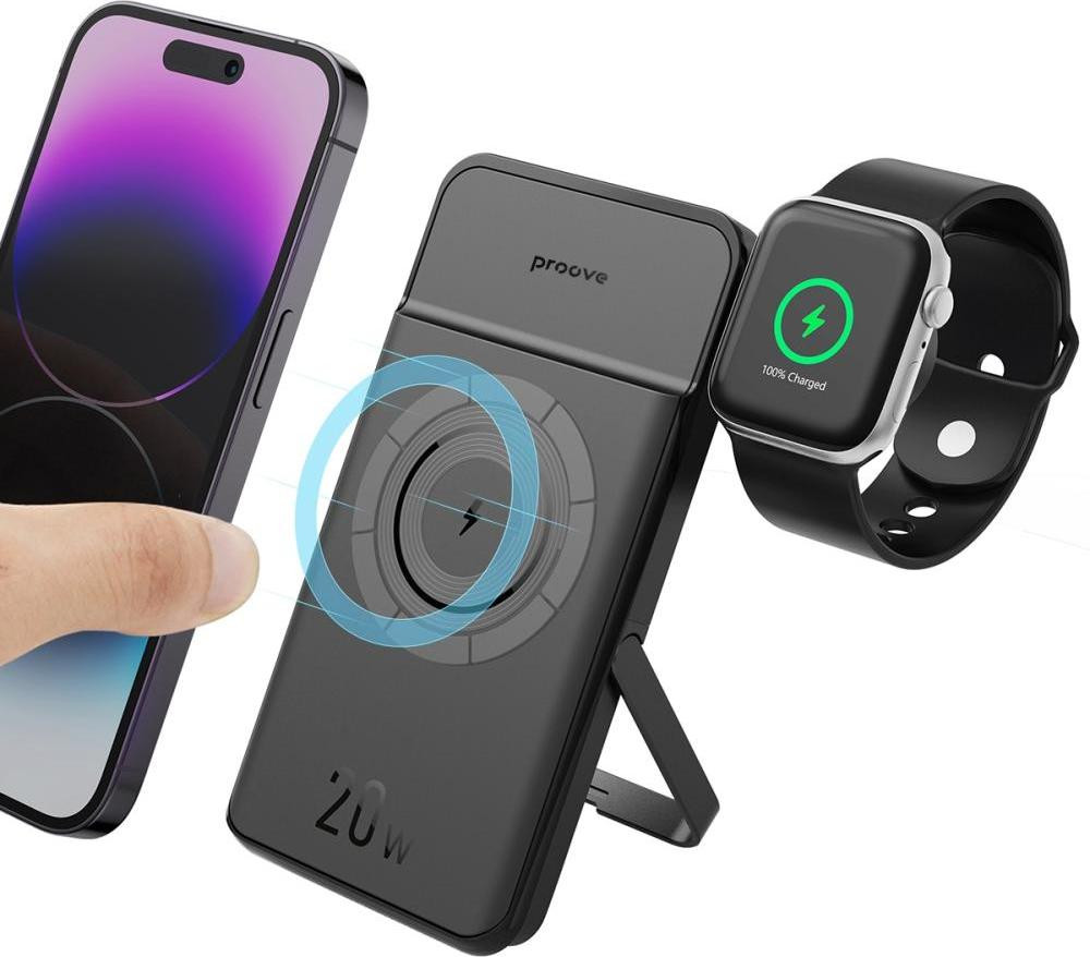 Зовнішній акумулятор Powerbank з бездротовою зарядкою Proove Power Stand 2 in 1, 20W, 10000mAh, Black (PBPS20030001)