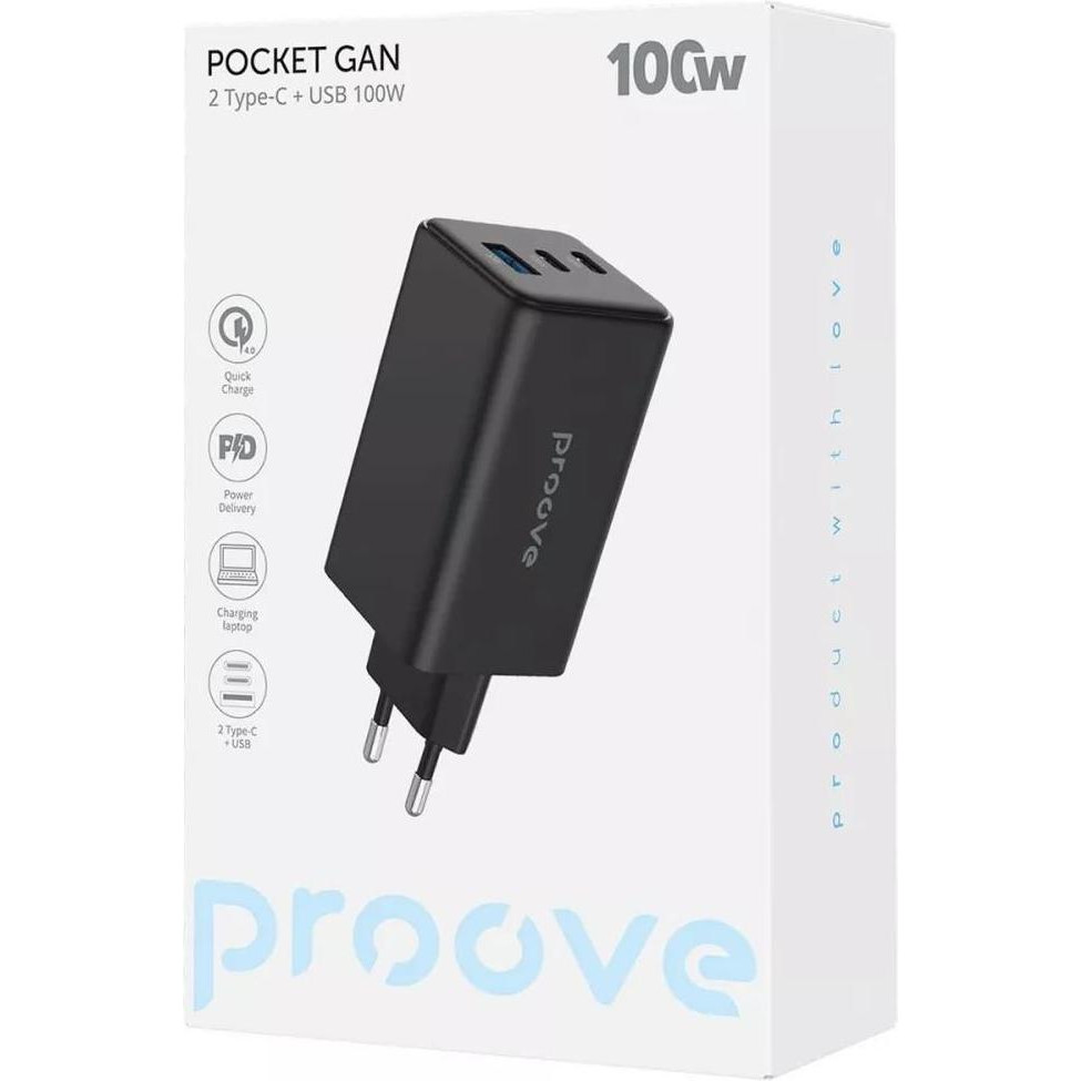 Мережевий зарядний пристрій Proove Pocket GaN Max, 2xUSB Type-C/1xUSB Type-A, 100W, Black (WCPG10012201)