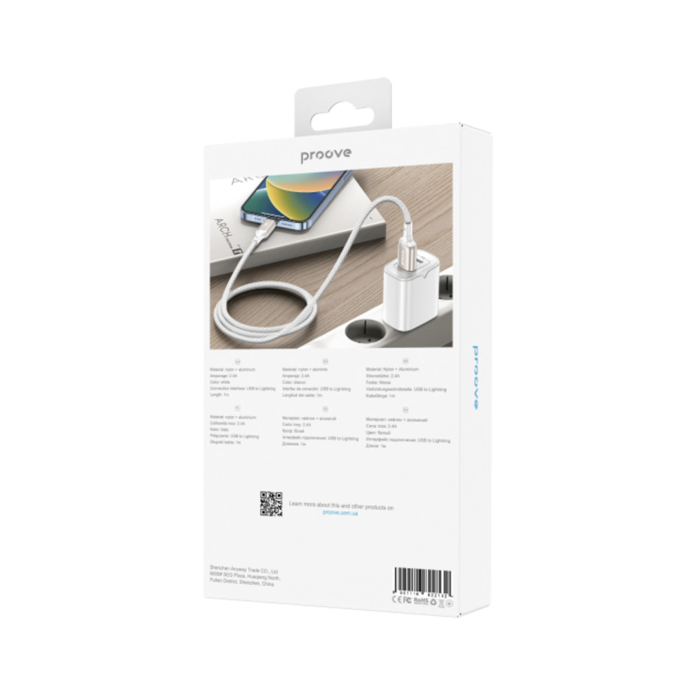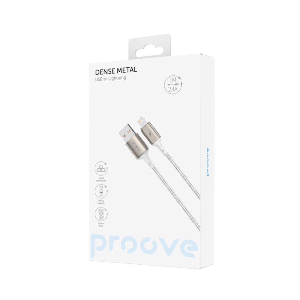 Кабель Proove Dense Metal, USB Type-A to Lightning, 2.4A, 1м, White (CCDM20001102)