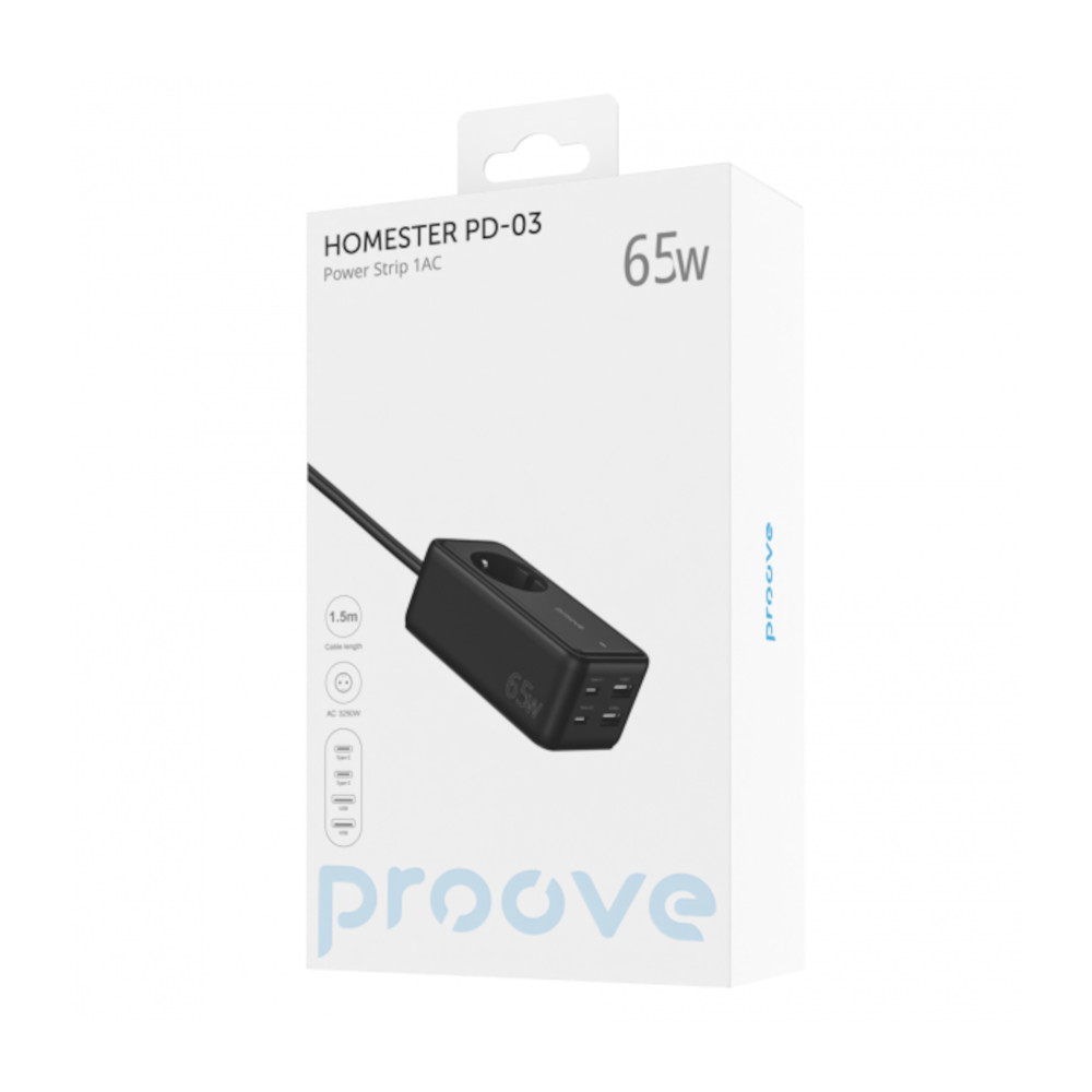 Мережевий фільтр Proove Power Strip Homester PD-03, 65W, 1xAC, 2xUSB Type-C/2xUSB Type-A, Black (PSP165220001)