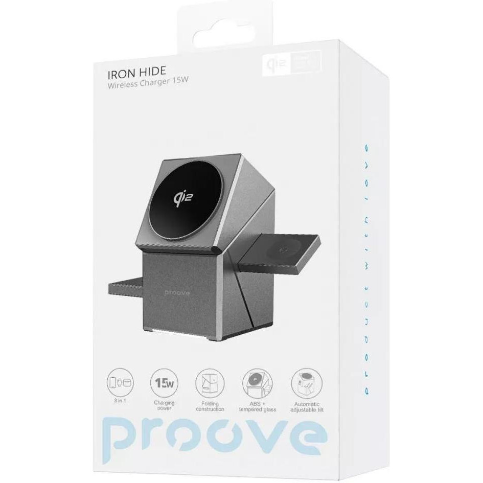 Бездротовий зарядний пристрій Proove Iron Hide 3 in 1, Qi2, Gray (WSIH15000003)