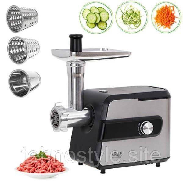 М'ясорубка Adler AD 4813, 2000Вт, корпус з нержавіючої сталі, 3 решітки, 3 подрібнювача