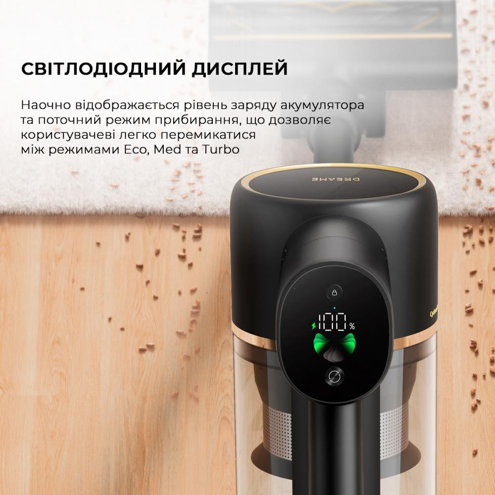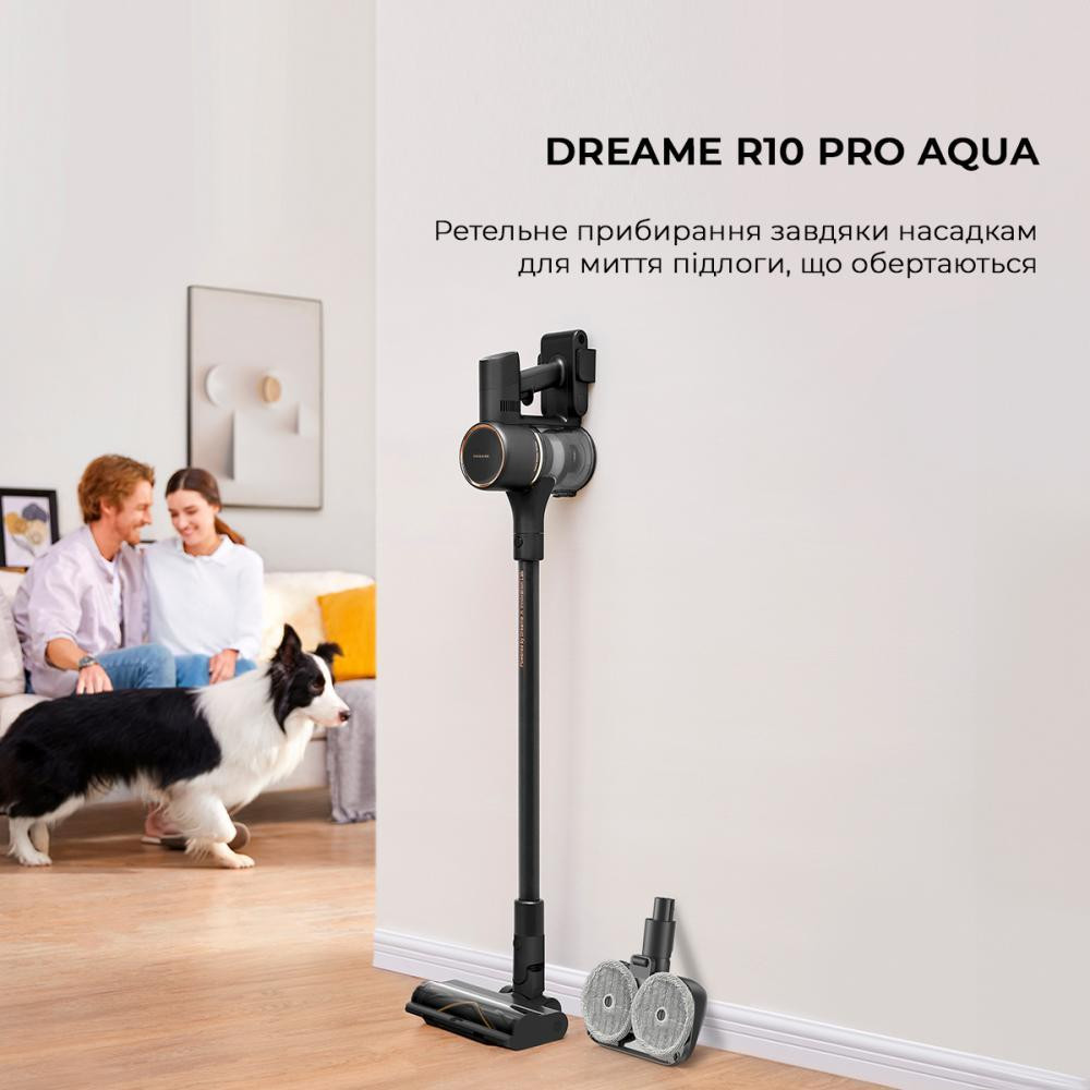 Потужність всмоктування: 20 000 Па. Яскраве світлодіодне підсвічування. Dreame R10 PRO Aqua оснащени