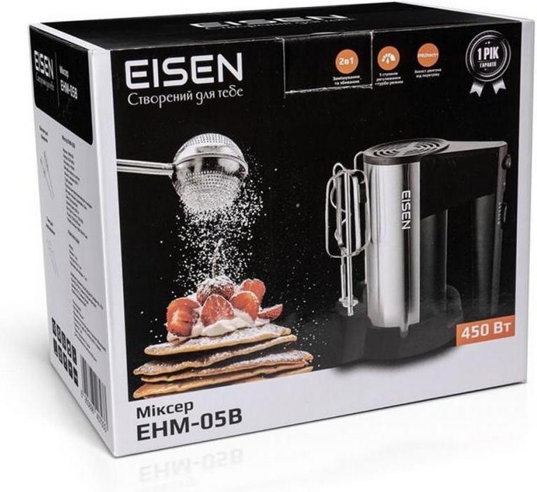 Міксер Eisen EHM-05B, 450Вт, вінчики - 2шт, гаки для тіста - 2шт