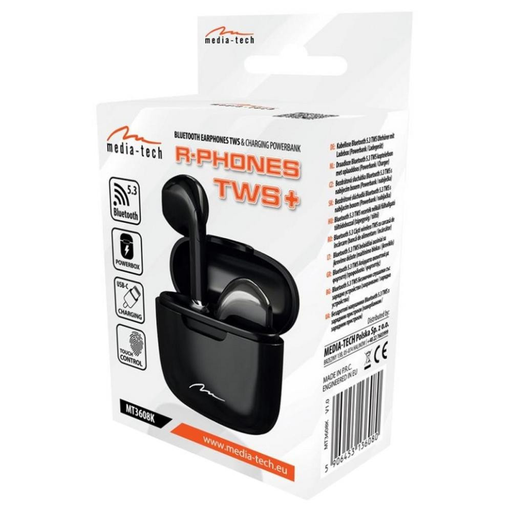 Навушники бездротові TWS Media-Tech R-PHONES, Bluetooth 5.3, Black (MT3608K)