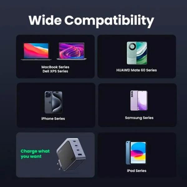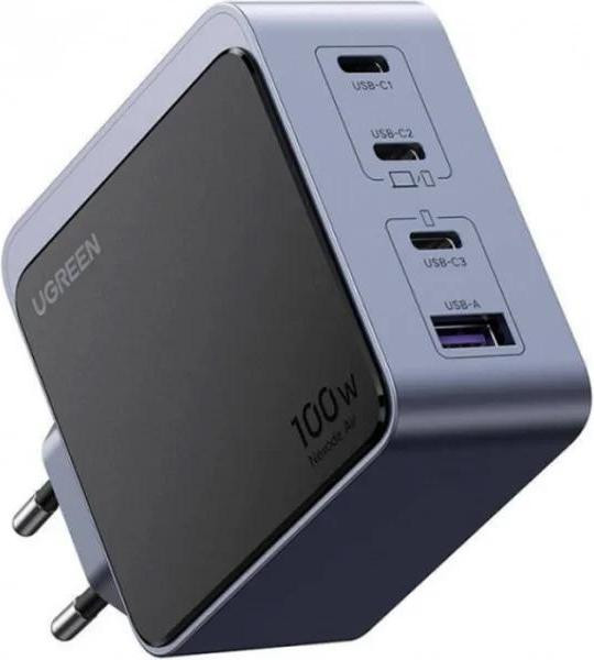 Мережевий зарядний пристрій Ugreen X565 Nexode Fast Charger, 3xUSB Type-C/1xUSB Type-A, 100W, GaN, сірий (35043)