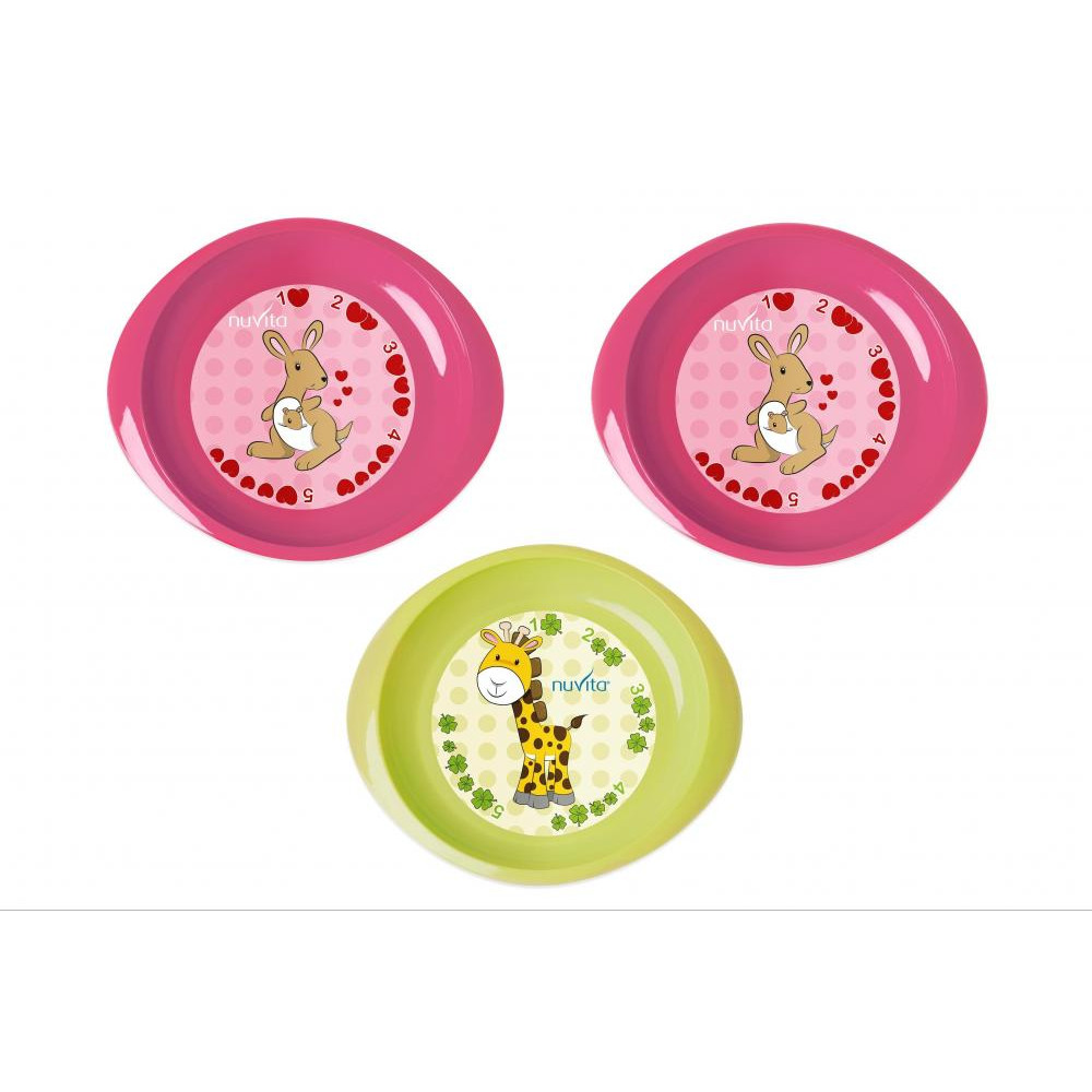 Набір тарілок дитячих Nuvita, 3шт, рожевий/салатовий (NV1428Pink)