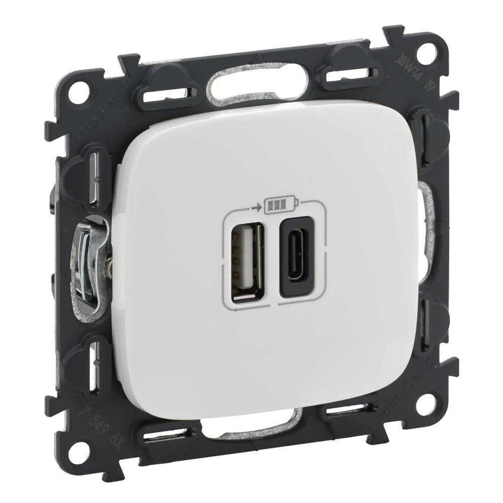 Розетка USB Legrand Valena Allure, USB Type-A/USB Type-С, 3А/5В, біла (754965)