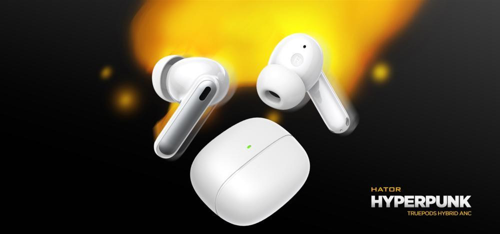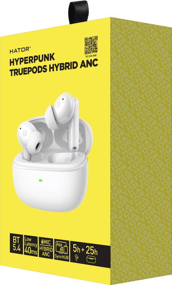 Навушники бездротові TWS Hator Hyреrpunk Truepods Hybrid ANC, White (HTA432)