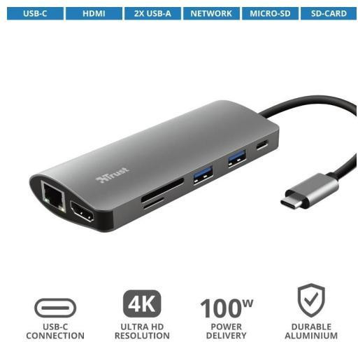 USB-хаб Trust Dalyx Aluminium, 7 в 1, USB Type-C (23775)