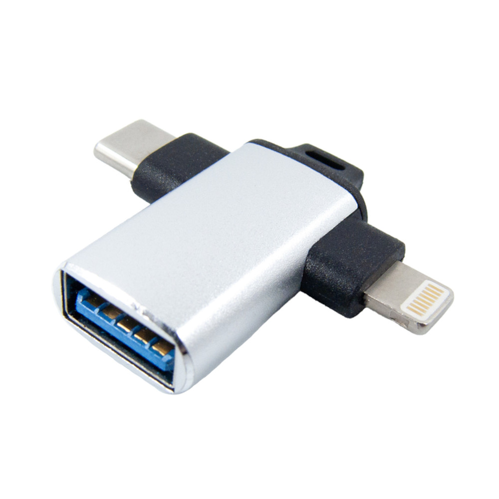 Адаптер Dengos, USB Type-A to Lightning/USB Type-C, OTG, Silver (ADP-022)