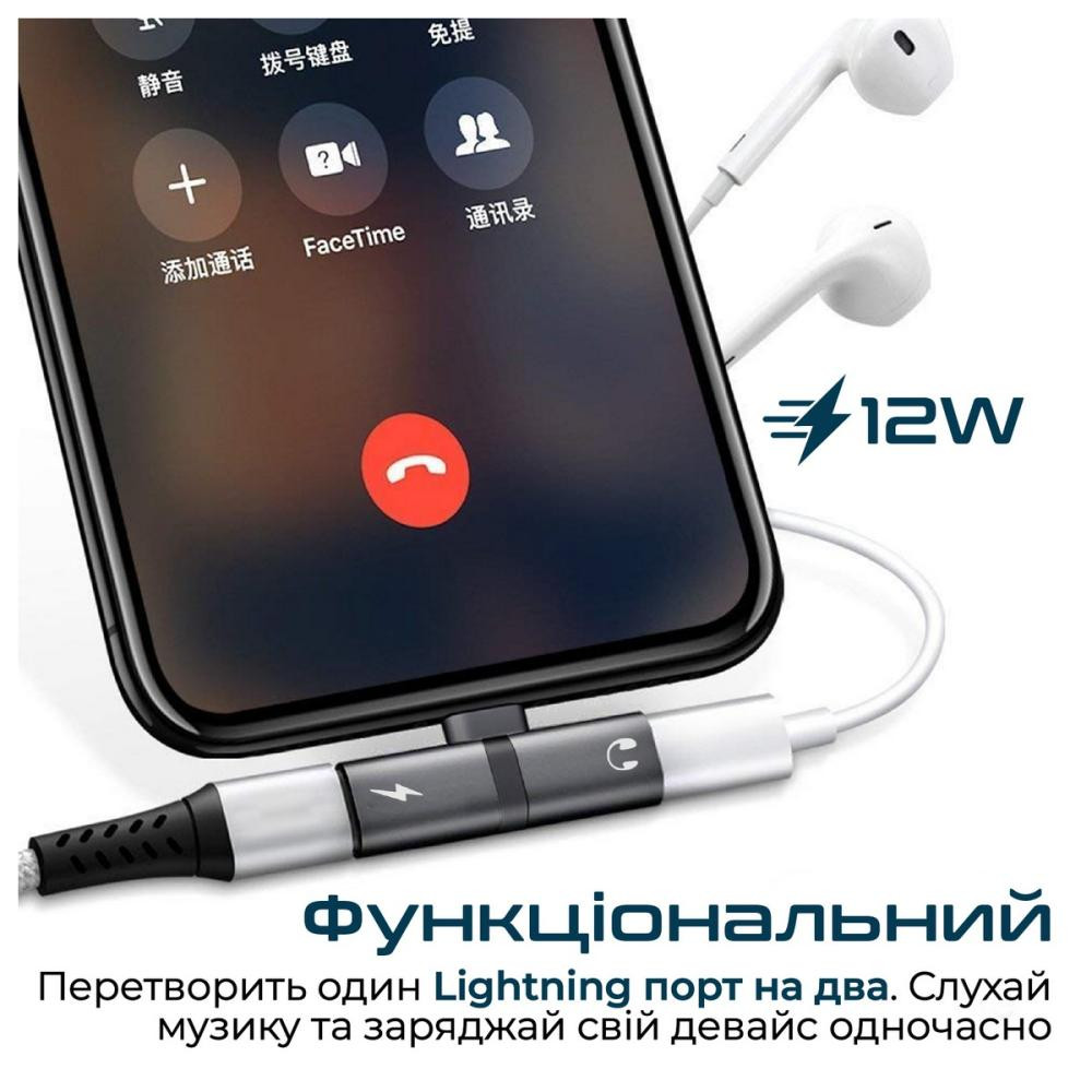 Адаптер Promate iHinge, Lightning (M) to 2хLightning (F), Grey
