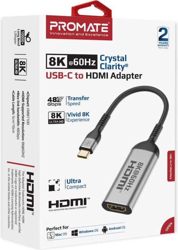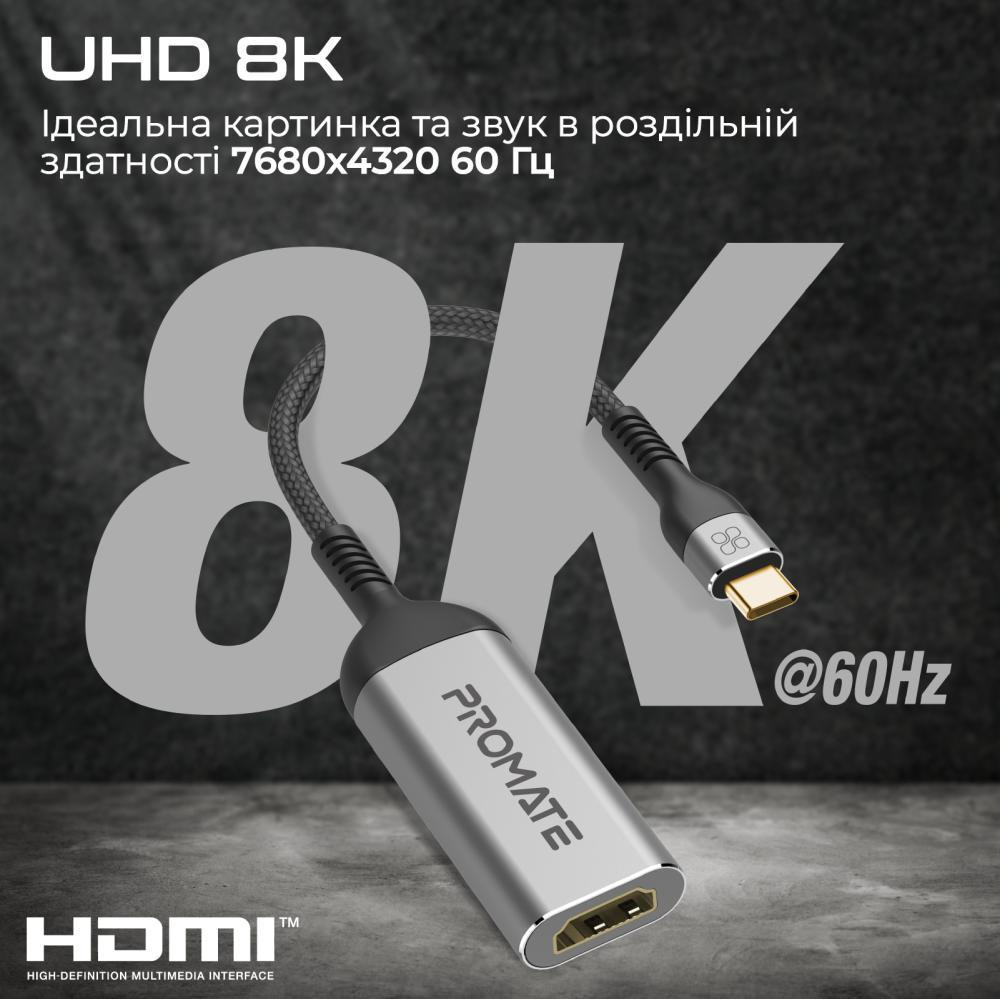 Адаптер Promate MediaLink-8K, USB Type-C (M) to HDMI (F), Grey