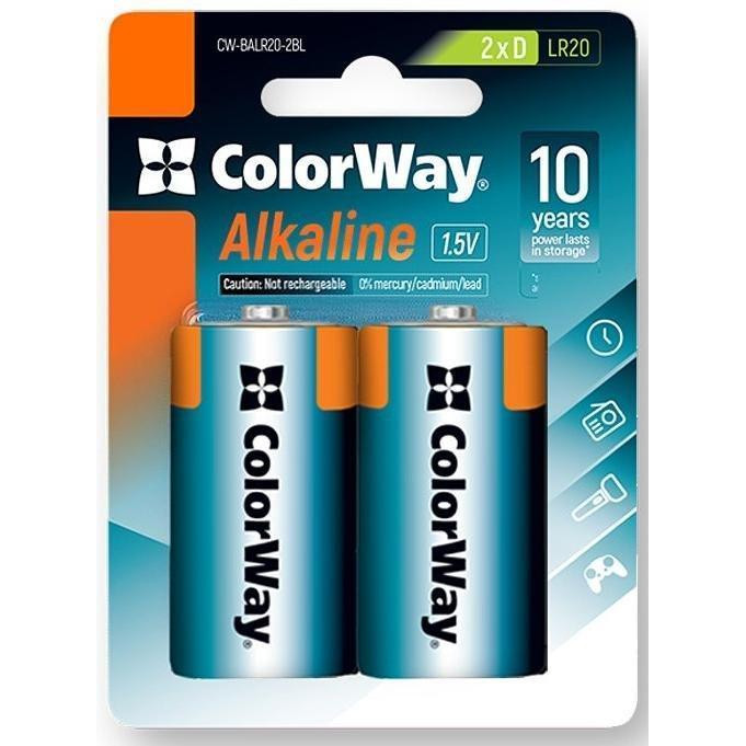 Батарейка ColorWay Alkaline Power, D/LR20, 2шт (CW-BALR20-2BL)