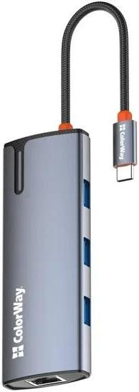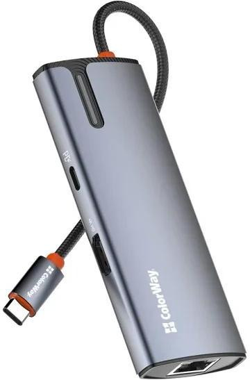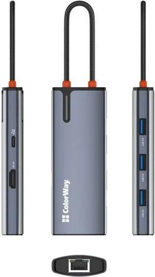 Док-станція ColorWay, USB Type-C to USB Type-C PD 100W/3xUSB 3.0/HDMI 4К/RJ-45 (CW-HUB02)