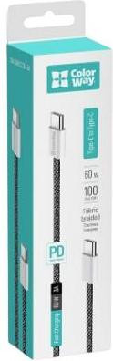 Кабель ColorWay, USB Type-C to USB Type-C, 3А, 1м, Black (CW-CBPDCC061-BK)
