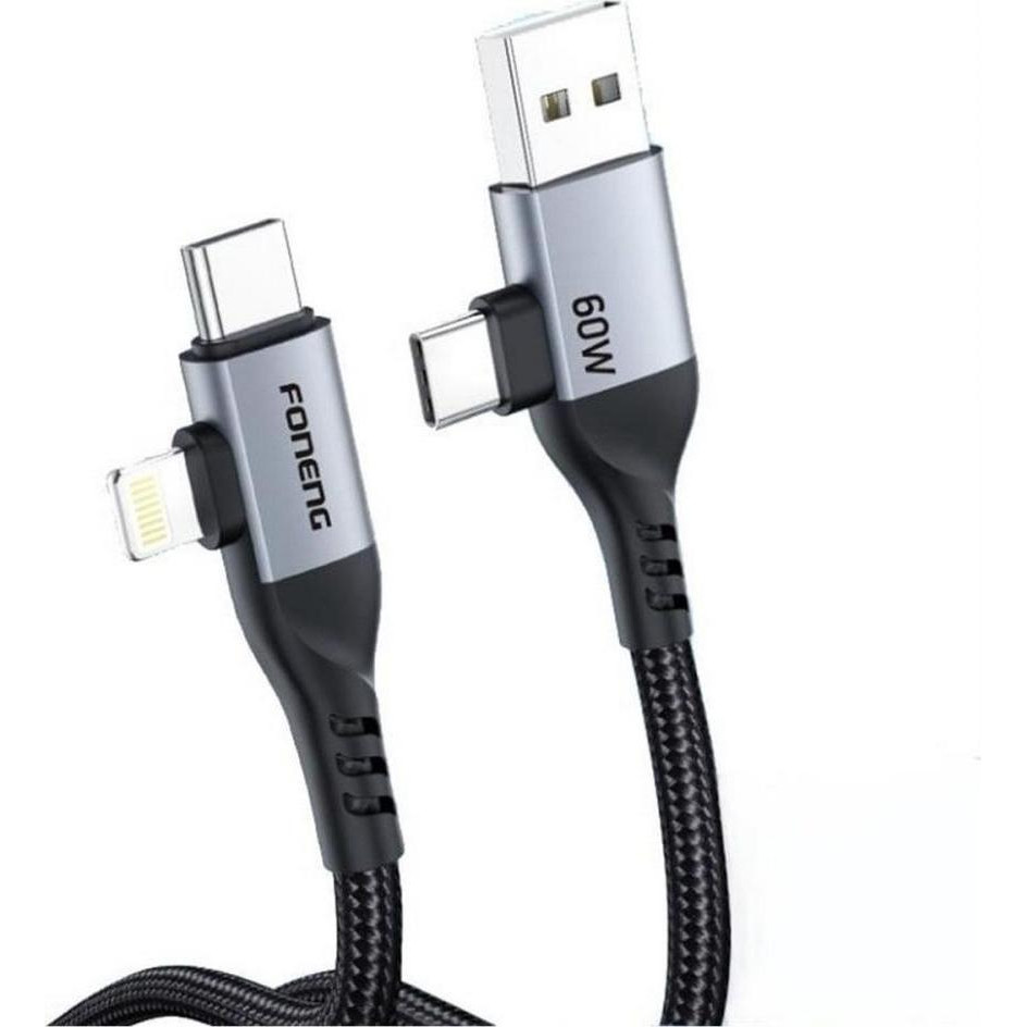 Кабель Foneng X92 4-in-1, USB Type-A/USB Type-C to USB Type-C/Lightning, 60W, 1м, Black (X92-CA-FIO)