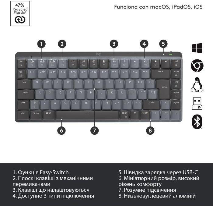 Клавіатура бездротова Logitech MX Mechanical Mini Minimalist, Graphite (920-010780)