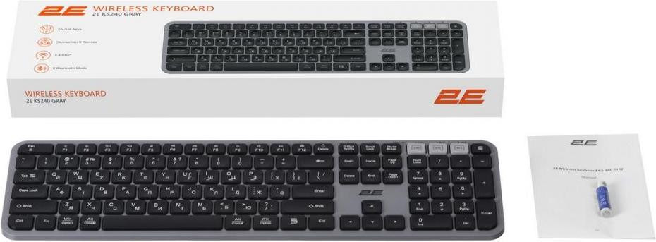 Клавіатура бездротова 2E KS240 WL BT, Gray (2E-KS240WG_UA)
