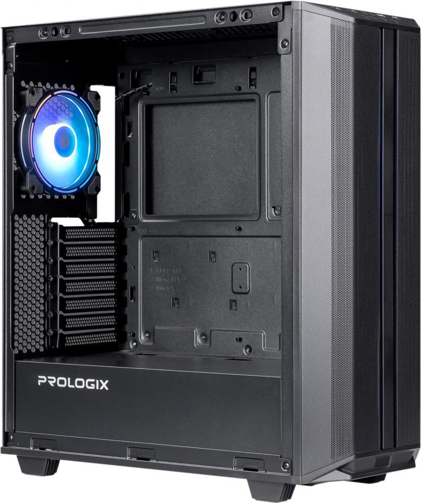 Корпус Prologix E122 Tempered Glass&Mesh, Midi-Tower, без блоку живлення, Black