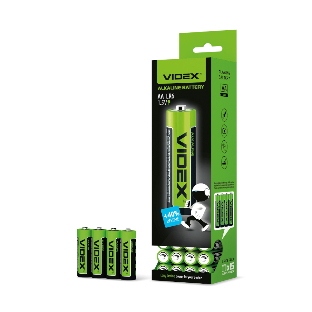Батарейка VIDEX, лужна, LR6/AA, 4шт