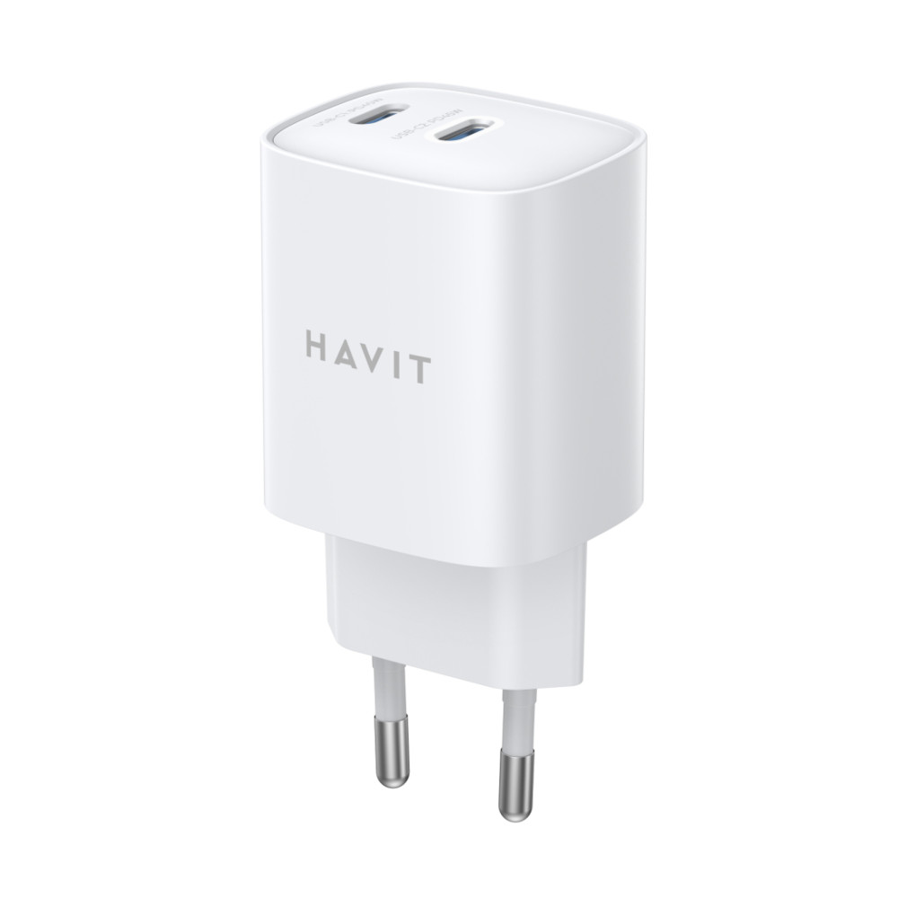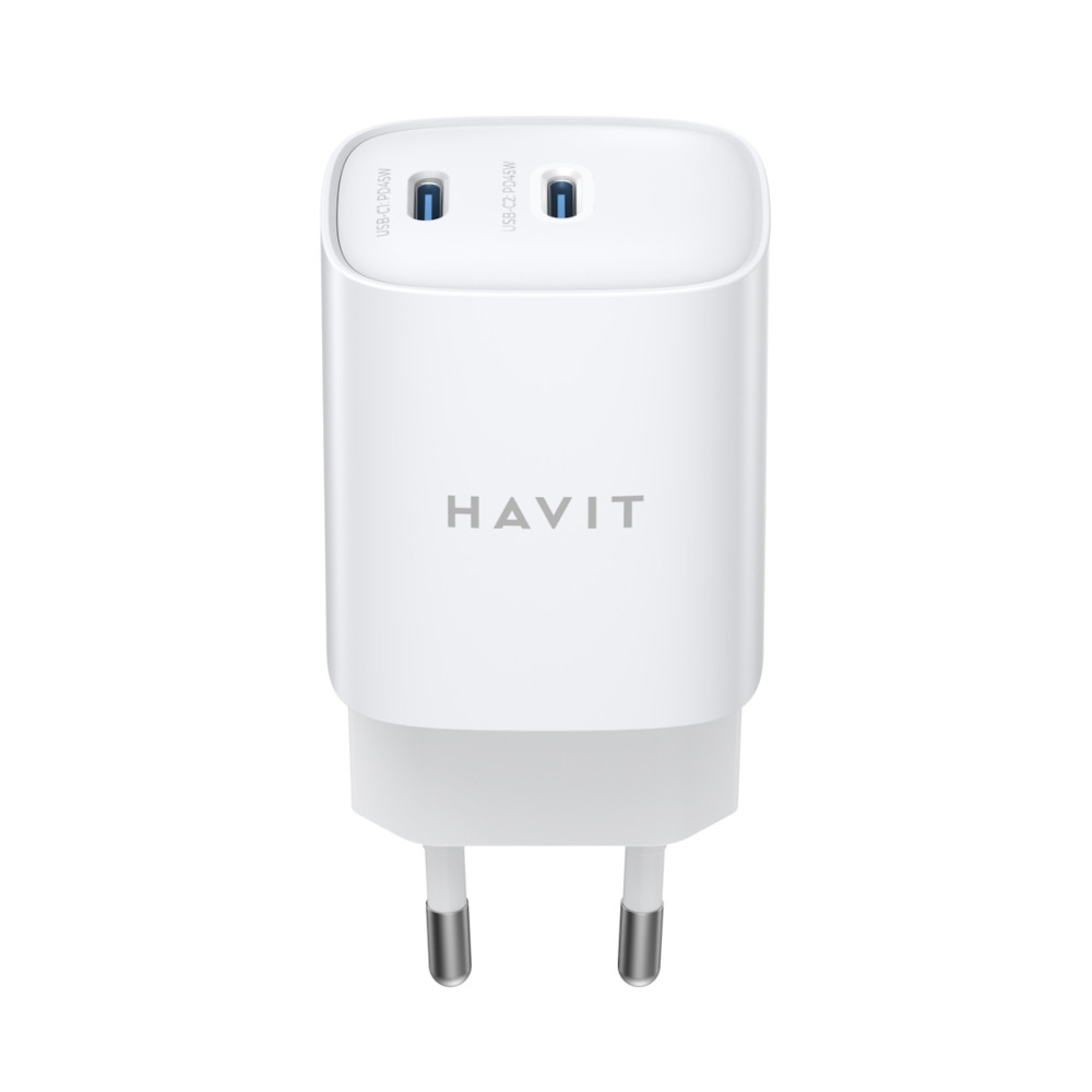 Мережевий зарядний пристрій Havit HV-UC45-WH, 2xUSB Type-C, PD45W, White