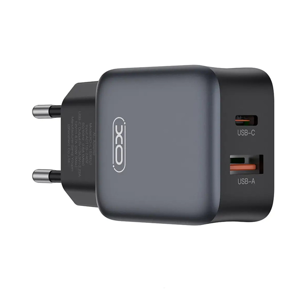 Мережевий зарядний пристрій XO L156, USB Type-С/USB Type-A, 3А, PD, QC 3.0, Black (L156.black)