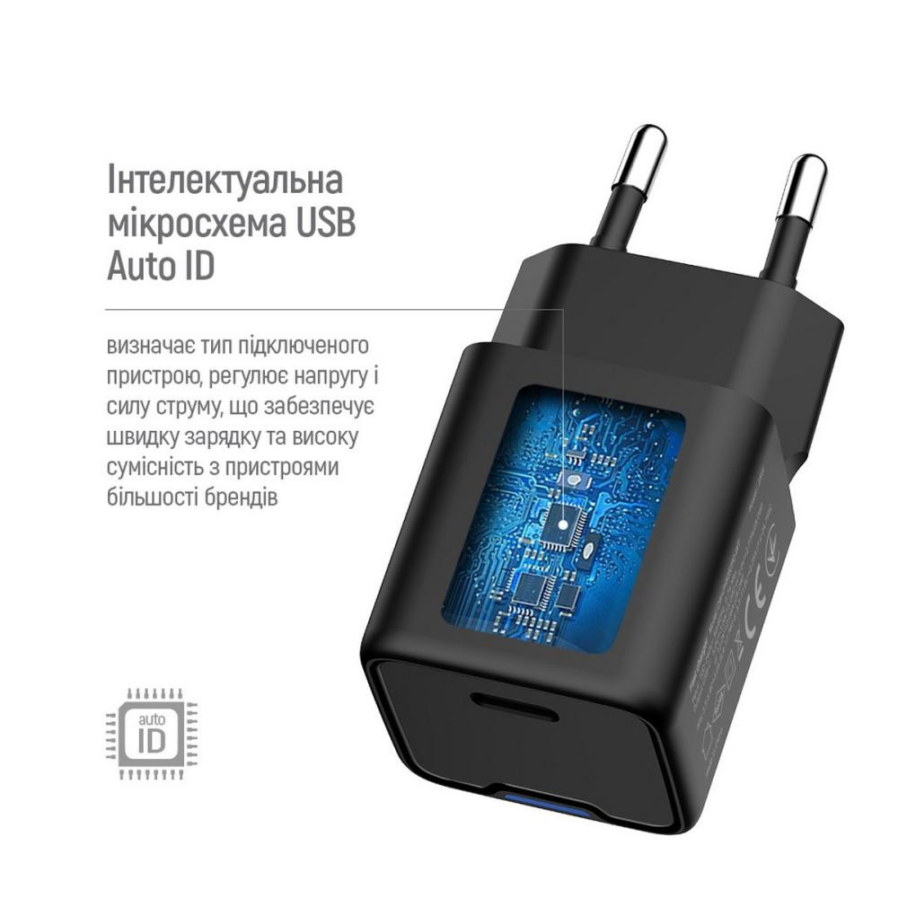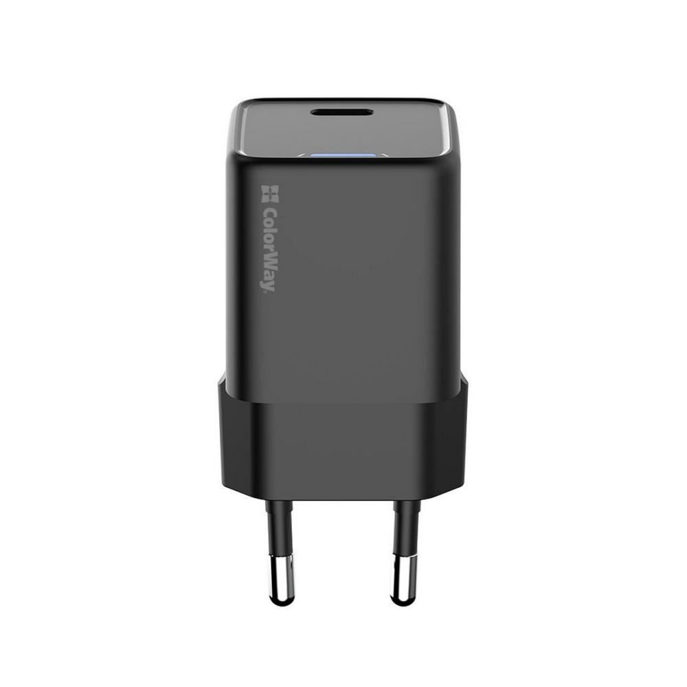 Мережевий зарядний пристрій ColorWay GaN Mini, USB Type-C, 25W PD, PPS, Black (CW-CHS052PD-BK)