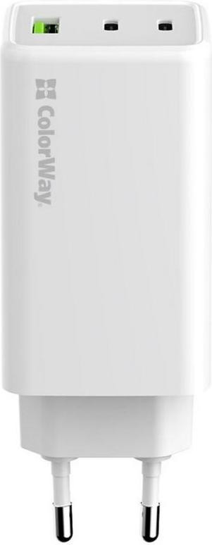 Мережевий зарядний пристрій ColorWay GaN Mini, USB Type-A/2xUSB Type-C, 100W PD, PPS, White (CW-CHS061PD-WT)
