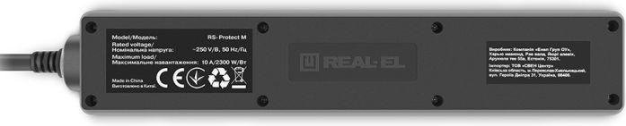 Мережевий фільтр REAL-EL RS-Protect M, 5 розеток, 1.8м, Black (EL122300026)