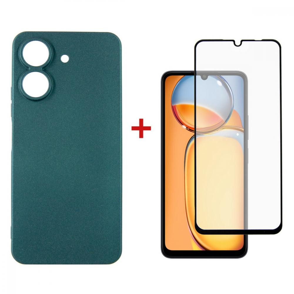 Чохол-накладка Dengos, для Xiaomi Redmi 13C, захисне скло в комплекті, Green (DG-KM-54)