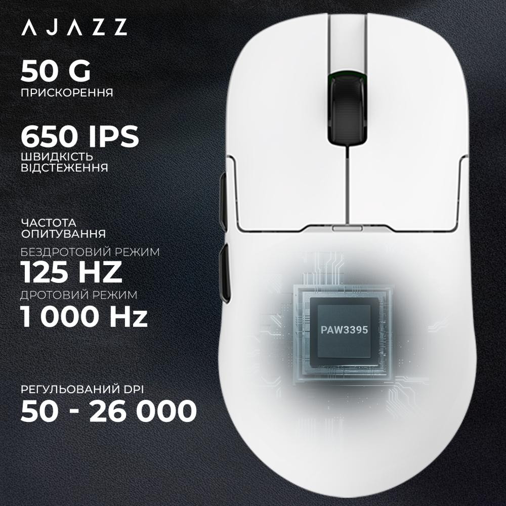 Миша бездротова, ігрова Ajazz AJ159PRO, Pixart 3395, 8K, Charging Dock, White (AJ159-PRO-W)