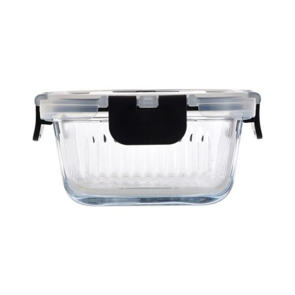 Контейнер скляний прозорий. Кришка пластикова на клямках. Підходить для миття в посудомийній машині.