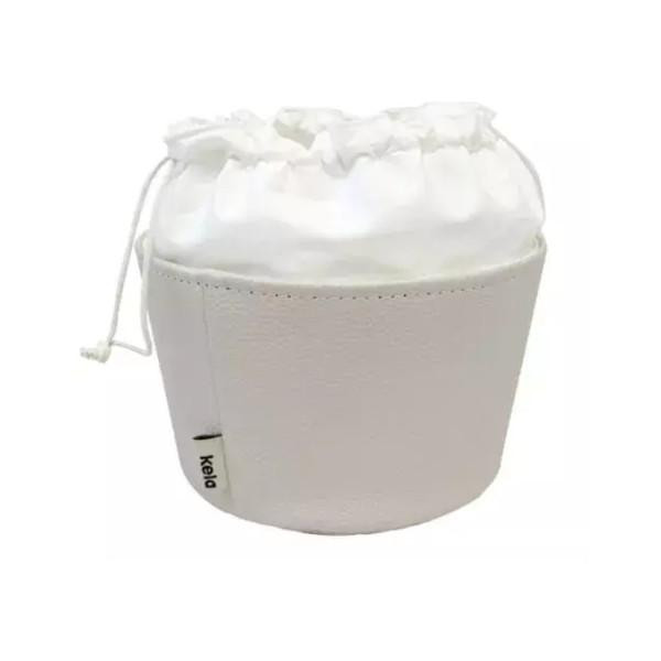Кругла хлібниця виготовлена зі штучної шкіри з бавовняним мішечком усередині для захисту випічки від