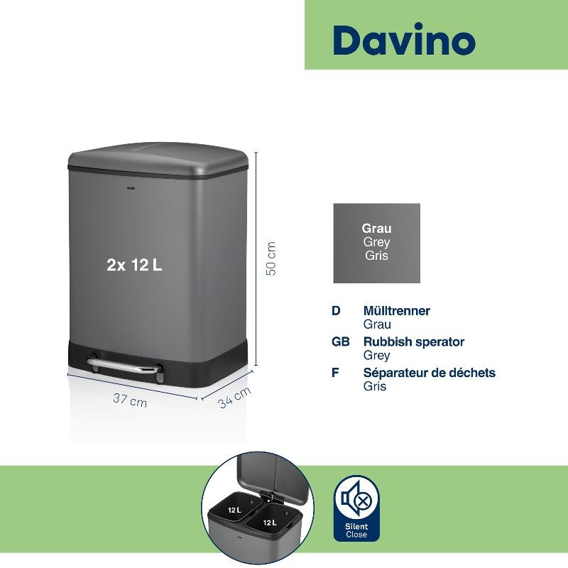 Відро для сміття KELA Davino, 2 відділення, 2х12л, з педаллю, сіре (10949)