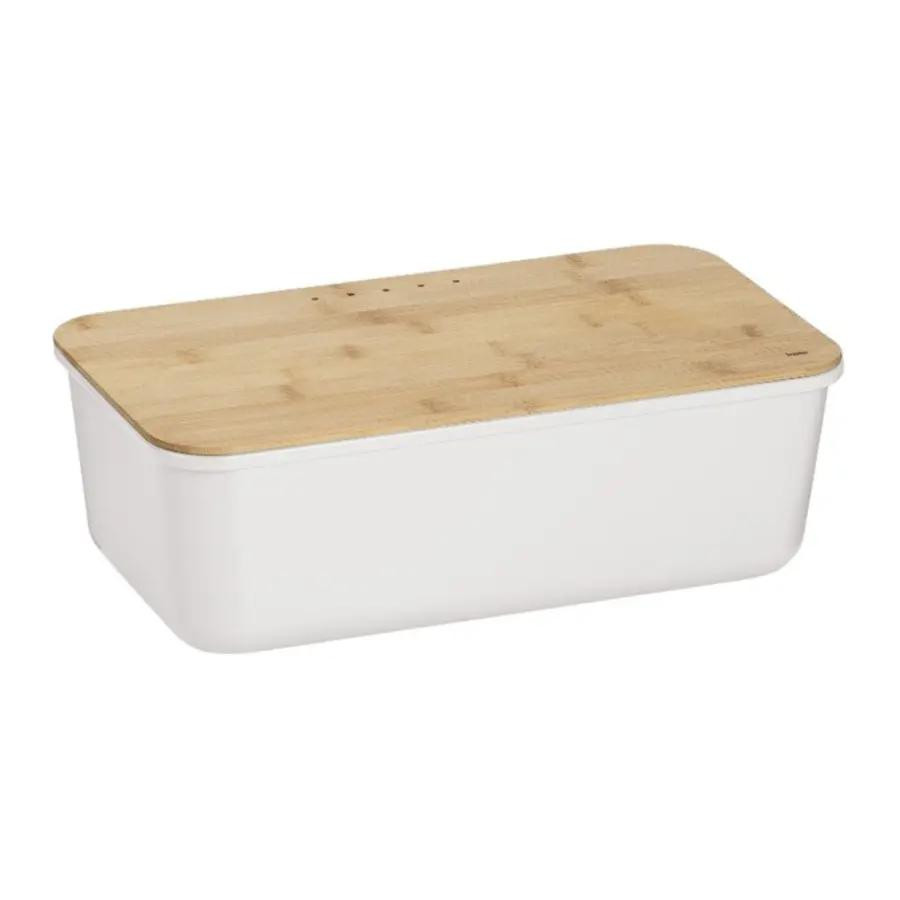 Прямокутна хлібниця із пластику з бамбуковою кришкою з отворами, через які надходить повітря та збер