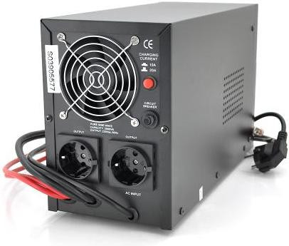 Особливості: • ДБЖ не працює як стабілізатор без підключення акуммуляторной батареї. • Кнопка включення або виключення інвертора від навантаження. • Індикація підвищення або зниження вхідної напруги. • Індикація перевантаження ДБЖ. • Індикація відключення ДБЖ через перегрів. Технічні характеристики: Номінальна потужність: 2000VA / 1400Вт Коефіцієнт потужності: 0,6 Тип вихідного сигналу: правильна синусоїда Вхідна напруга: 220V: 145 ~ 275V AC Вихідна напруга: 220V: 220V AC ± 10% Вихідна напруга при роботі від батареї : 220V AC ± 5% Час перемикання: 2 ≤ 6ms Перемикач струму заряда на 5 та 10 А( максимальний) Стабілізація (AVR): 3 ступені (мікропроцесорне управління, крок 22,5V ) Нижні пороги перемикань : 140V ± 5V AC Верхні пороги перемикань : 275V ± 7V AC Частота: 50Hz / 60 Hz Захист від короткого замикання: є Аварійне відключення (захист від перевантаження): є Захист від повного розряду батареї: є Холодний старт : є Наскрізний нуль : є USB інтерфейс : - RS-232 інтерфейс : - Захист ліній зв`язку: - Звукова індикація : є Тип індикації: Дисплей Зовнішня батарея: 24В, Тип запобіжника: термічний Кількість розеток Schuko: 2 Тип корпуса: метал, колір чорний Тип кріплення: підлоговий Робоча температура: 0 - 45 ° С