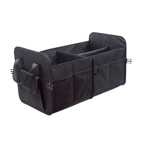 Переваги: - Місткість: 60 літрів дозволять вам розмістити в органайзері все необхідне для поїздки, будь то інструменти, продукти, дитячі іграшки або спортивне приладдя. - Компактність: органайзер легко складається і займає мінімум місця у багажнику. - Органайзер виготовлений із міцних матеріалів, які стійкі до зносу та забруднень. Характеристики: • Розмір: 600x330х330 мм • Вага: 1,10 кг. • Об`єм: 60 літрів • Кількість відділень: 3 • Матеріал: поліестер • Колір чорний