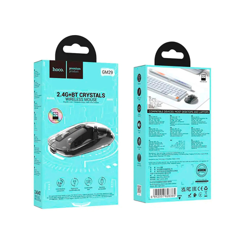 Миша бездротова HOCO GM29, 1600 DPI, 2.4GHz, Black/Transparet, Blister