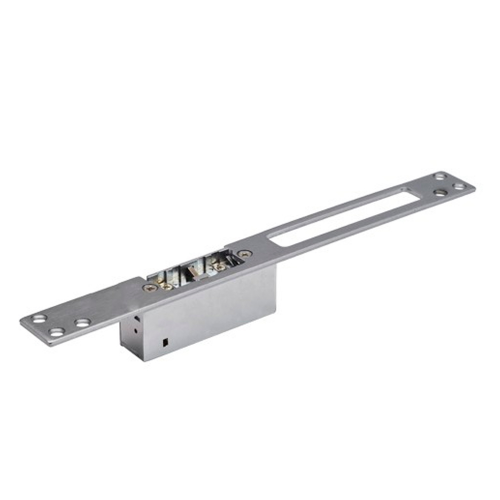 Електромеханічна клямка з довгою планкою NC (при подачі живлення відкривається), функція розблокування, 12В / 700мА. Для вузьких дерев`яних і металевих дверей. Технічні характеристики: Спосіб установки: виразний Положення на двері: універсальний Планка: довга Функція розблокування: є Контроль проходу: немає Замок відкритий: при подачі живлення Живлення: 12В Споживання: 240мА Комплектація: засувка, планка Матеріал: метал Робоча температура: від -30 до +50 тільки внутрішня установка Розміри: Засувка: 74х29х31мм, Планка: 240х32х3мм Вага: 0,4кг