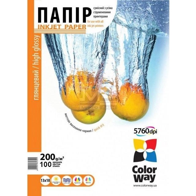 Папір ColorWay A4 (ПГ200-100) (PG200100A4) 200 г/м2, 100 аркушів, глянець