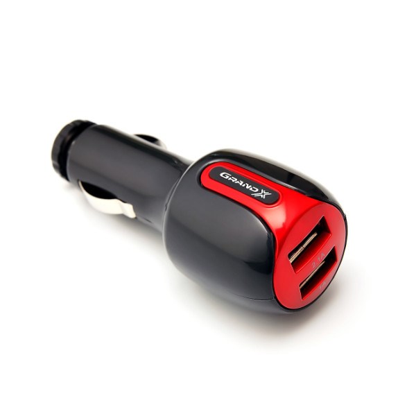 Автомобільний зарядний пристрій Grand-X CH-22 2A, Black-red