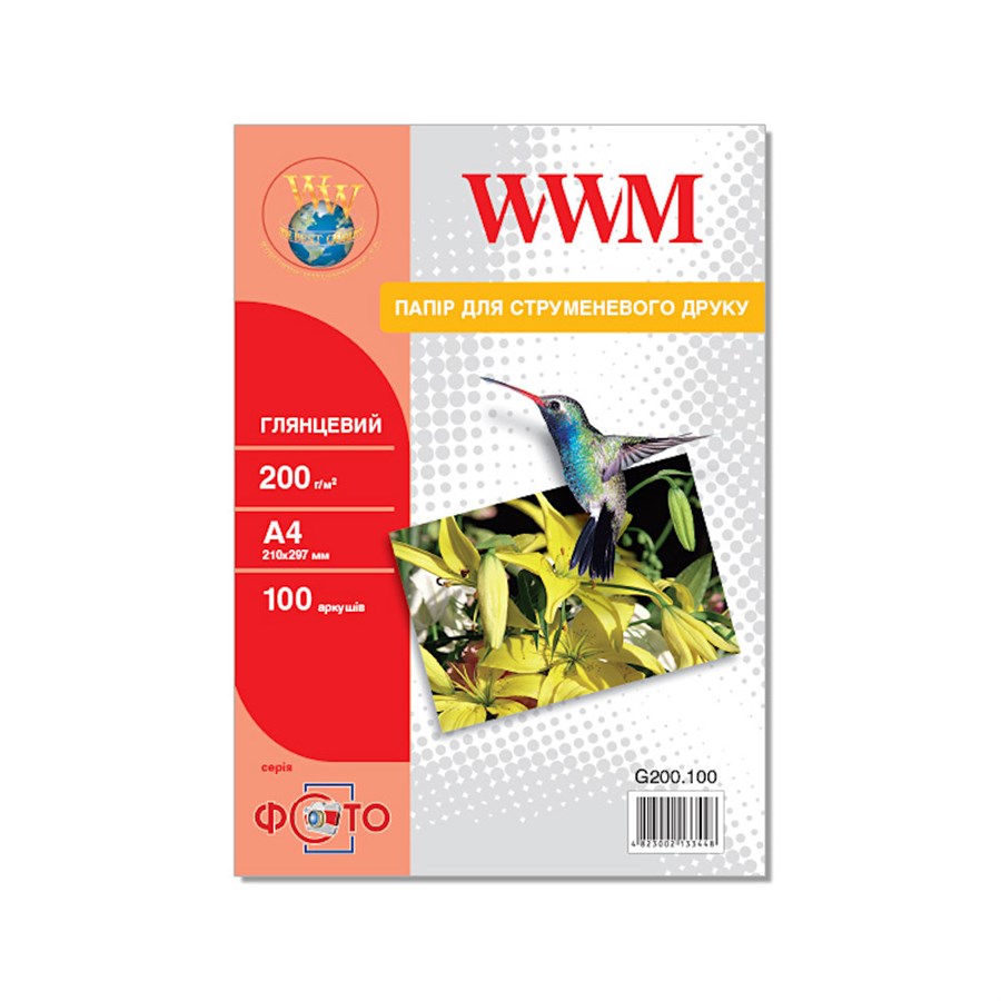 Фотопапір WWM, глянцевий 200g/m2, А4, 100л (G200.100)