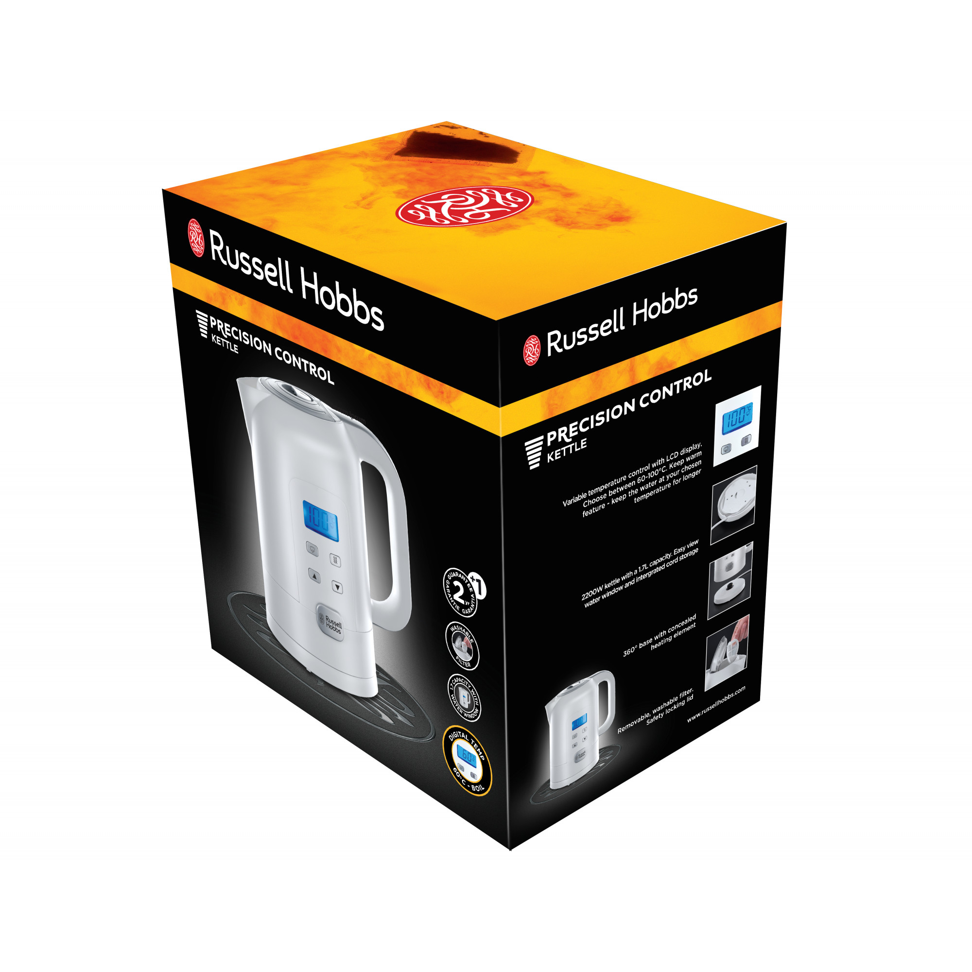 Електрочайник Russell Hobbs Precision Control 1.7л, LED дисплей, пластик, регулювання температури нагріву, білий