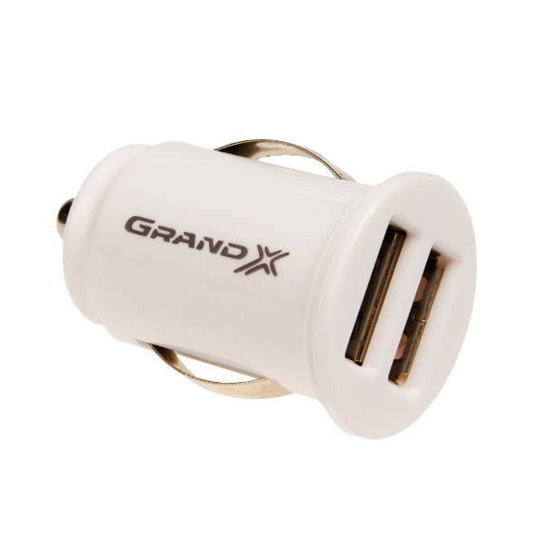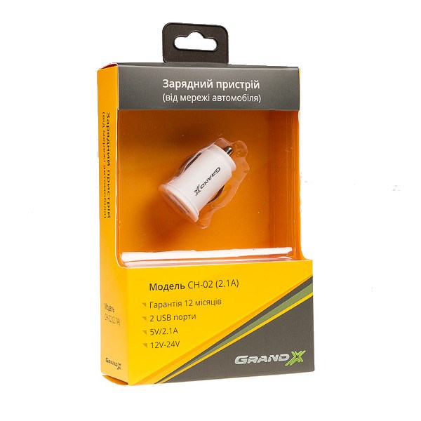 Автомобільний зарядний пристрій Grand-X CH-02 (2USB 5V 2.1A, 12-24V), White (CH-02W)